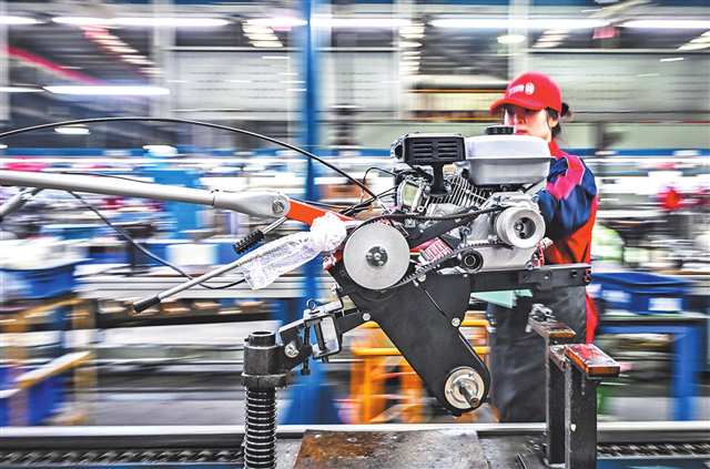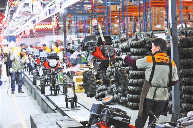 位于巴南区的一家农机公司,工人在装配耕作机。通讯员 李攀 摄/视觉重庆